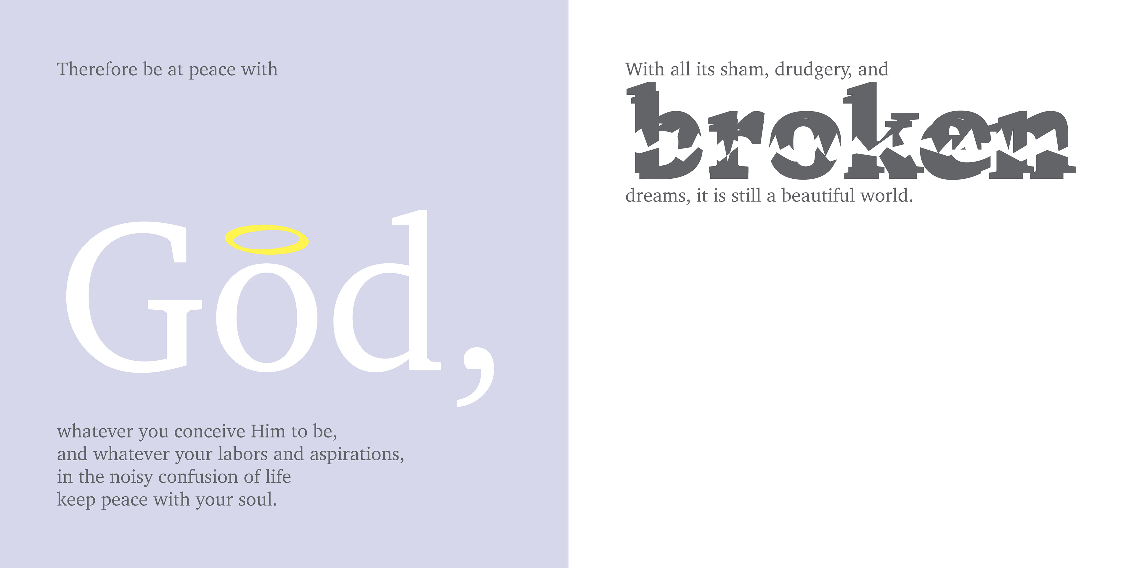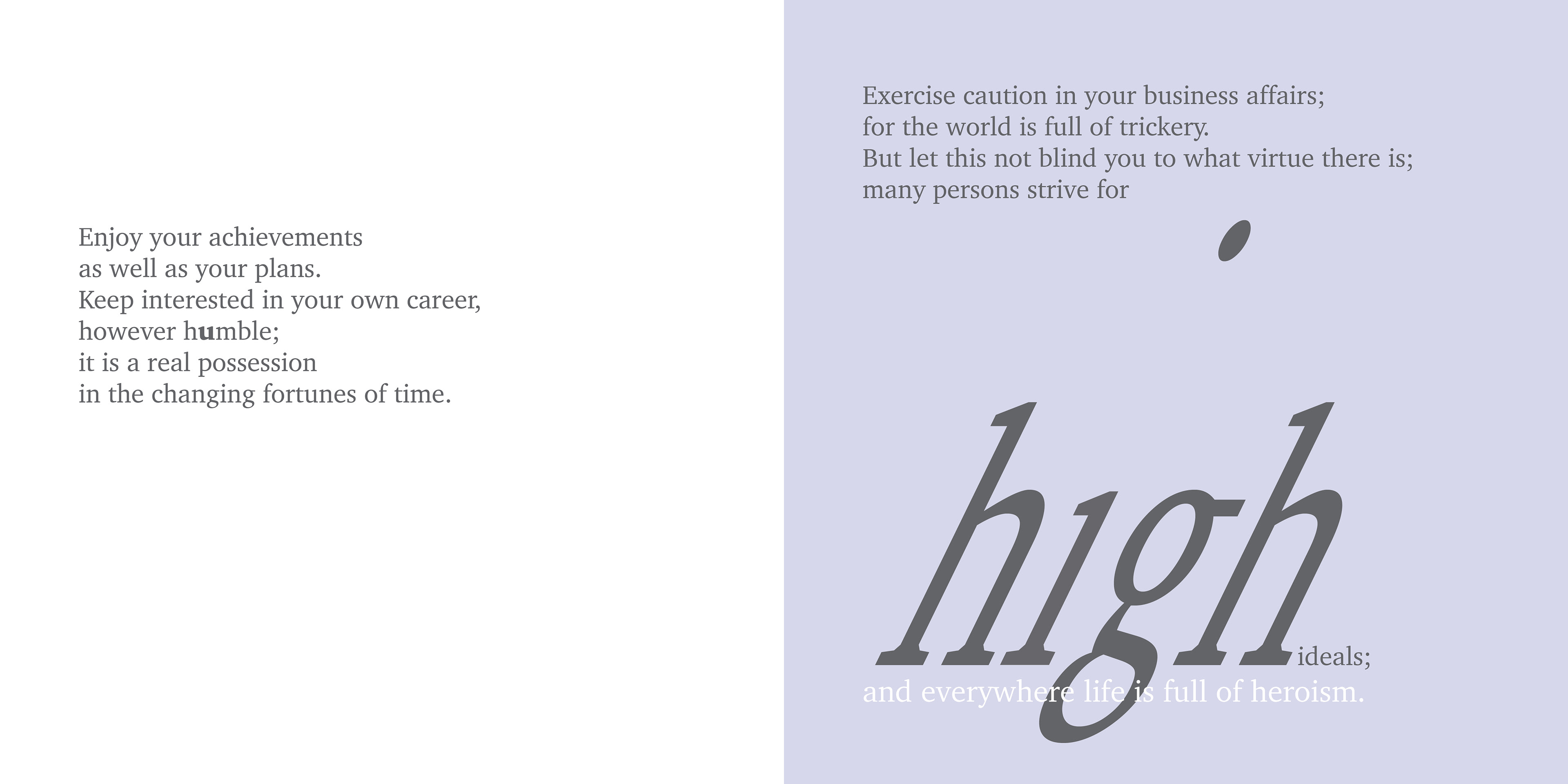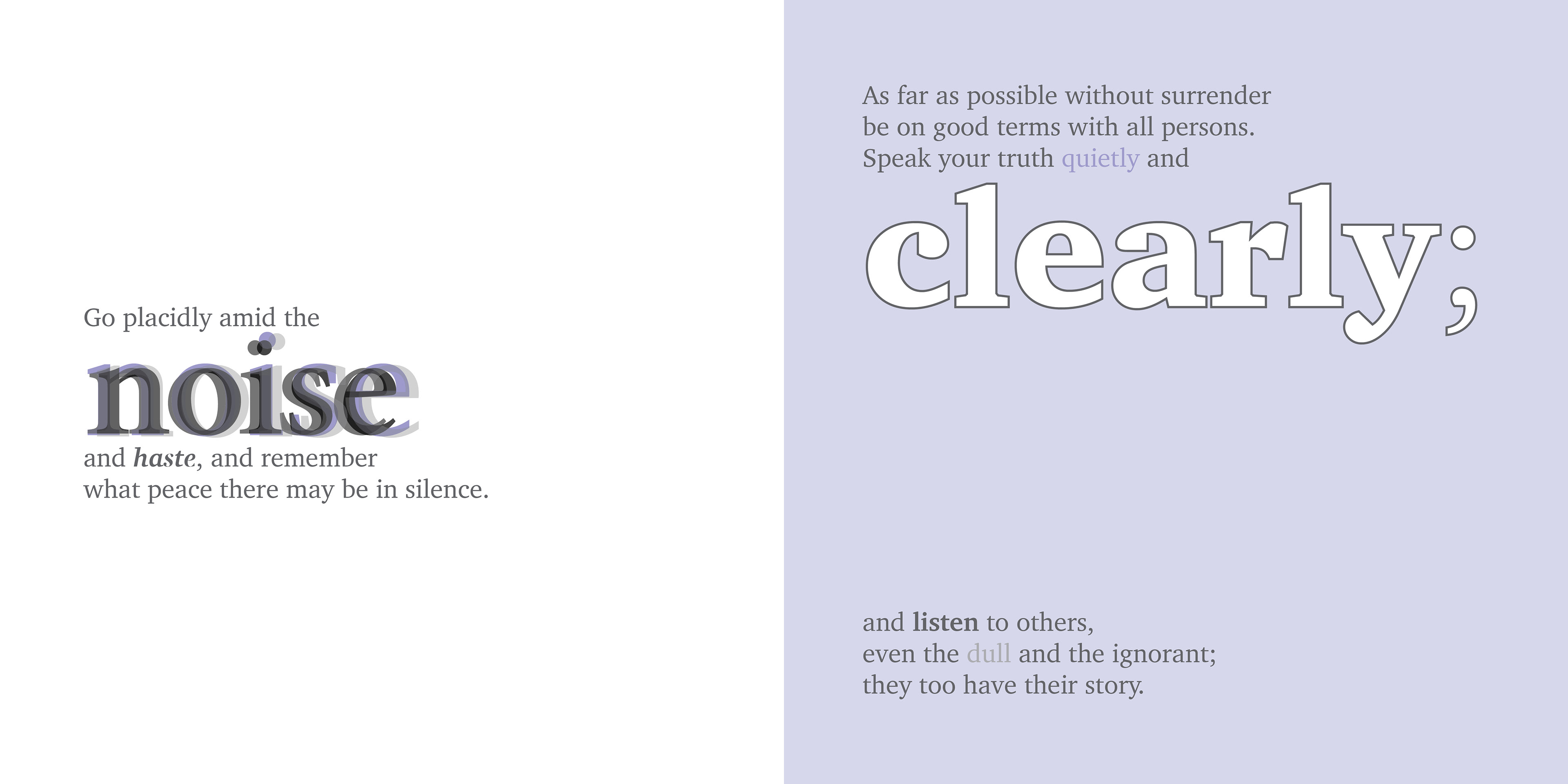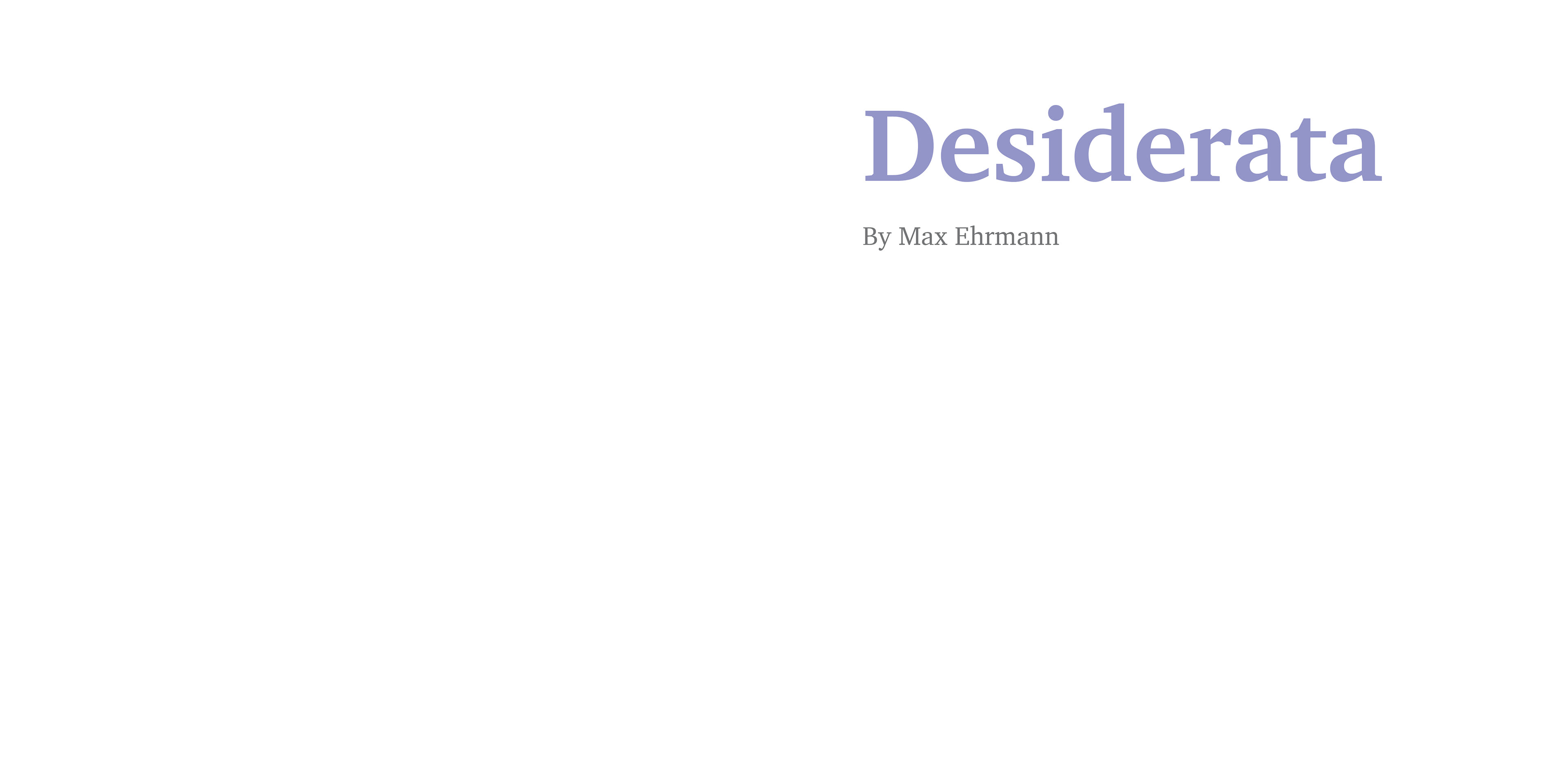 Title page of my expressive typography book based on the poem "Desiderata" by Max Ehrmann.