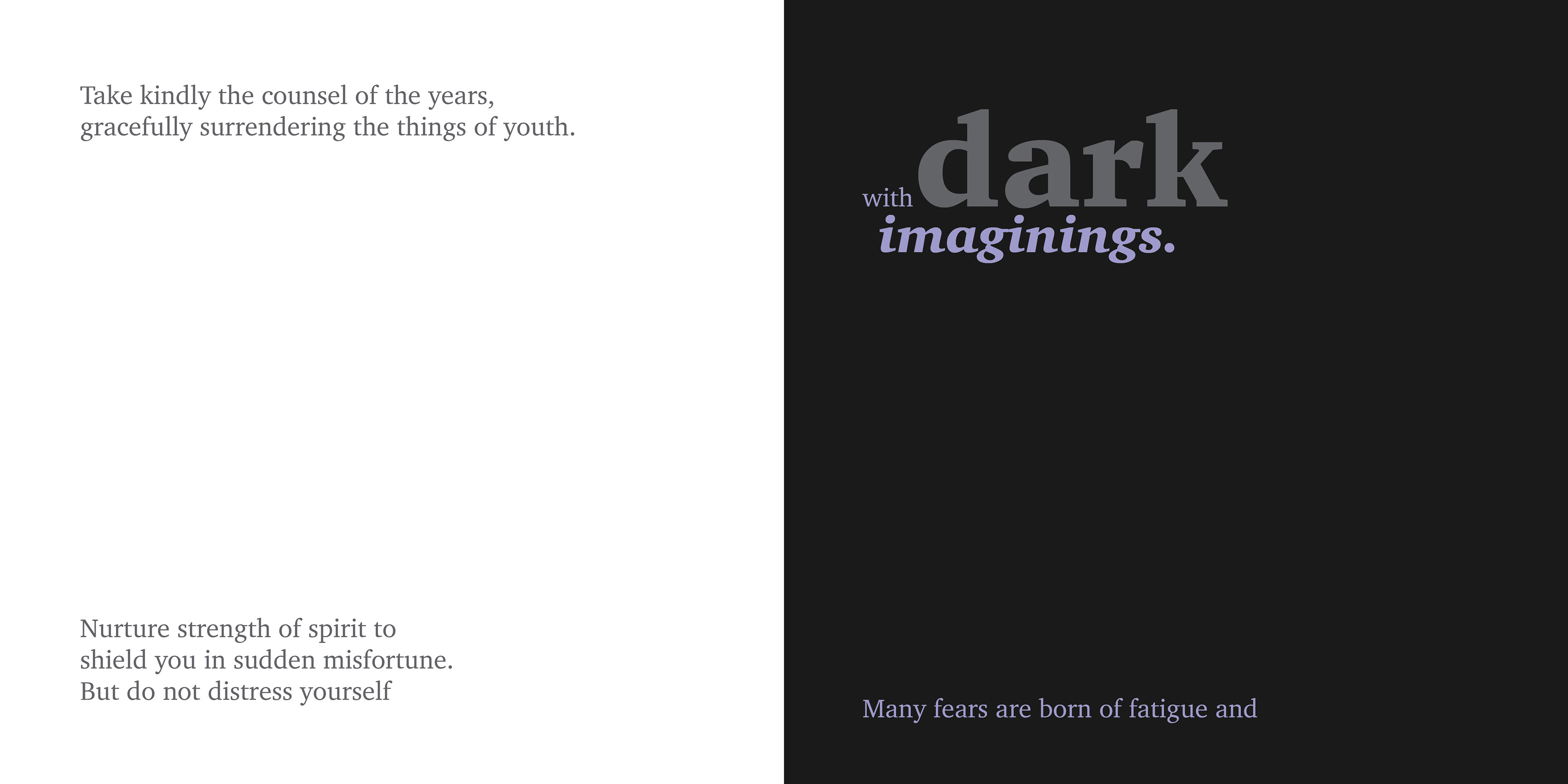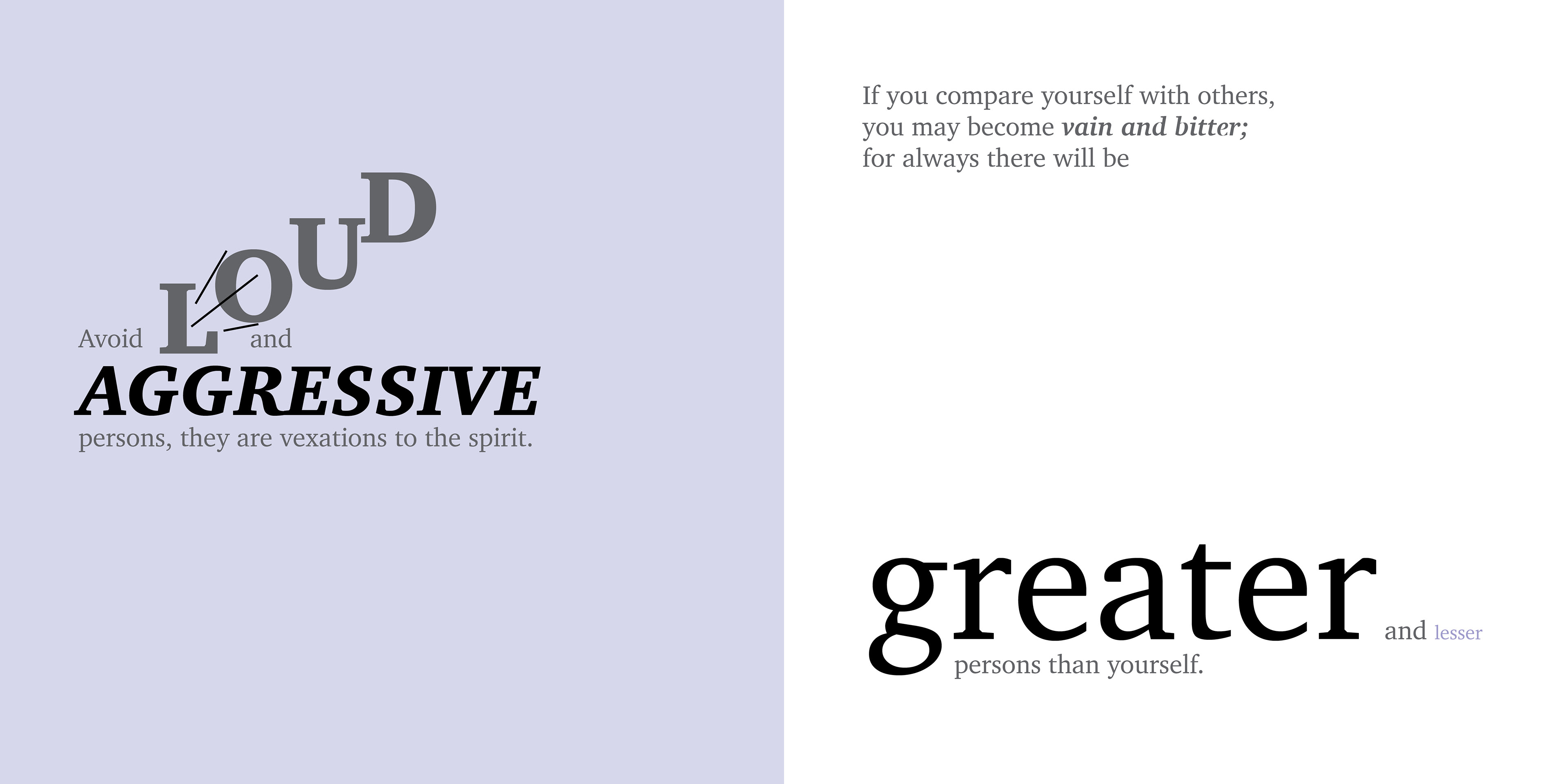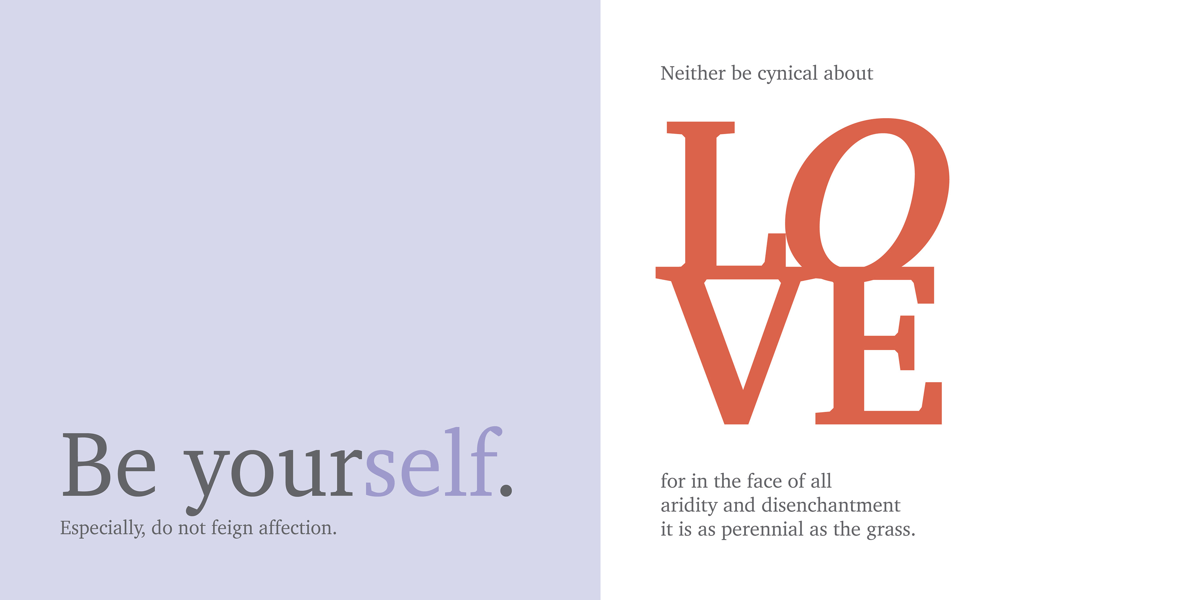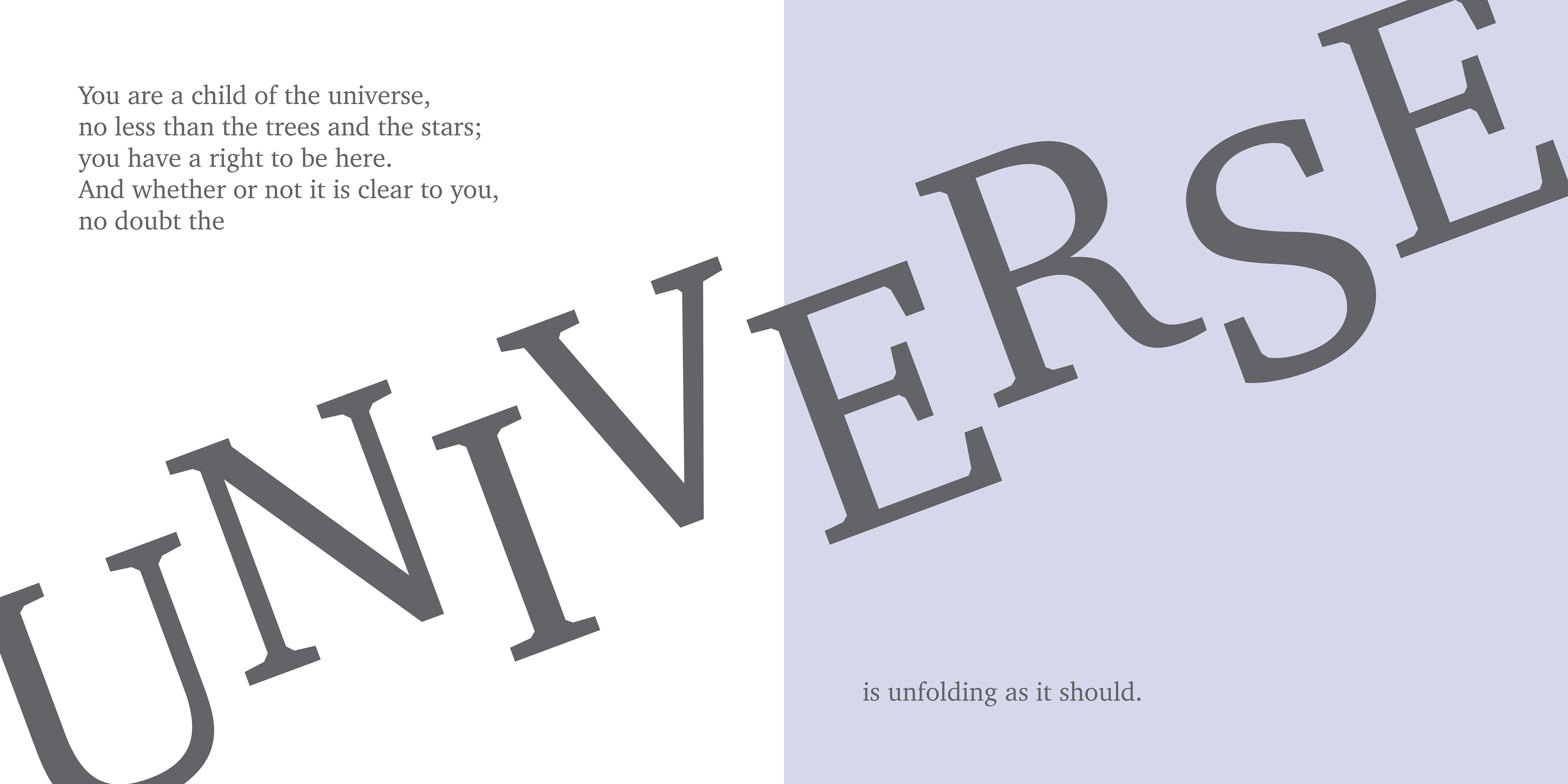 Title page of my expressive typography book based on the poem "Desiderata" by Max Ehrmann.