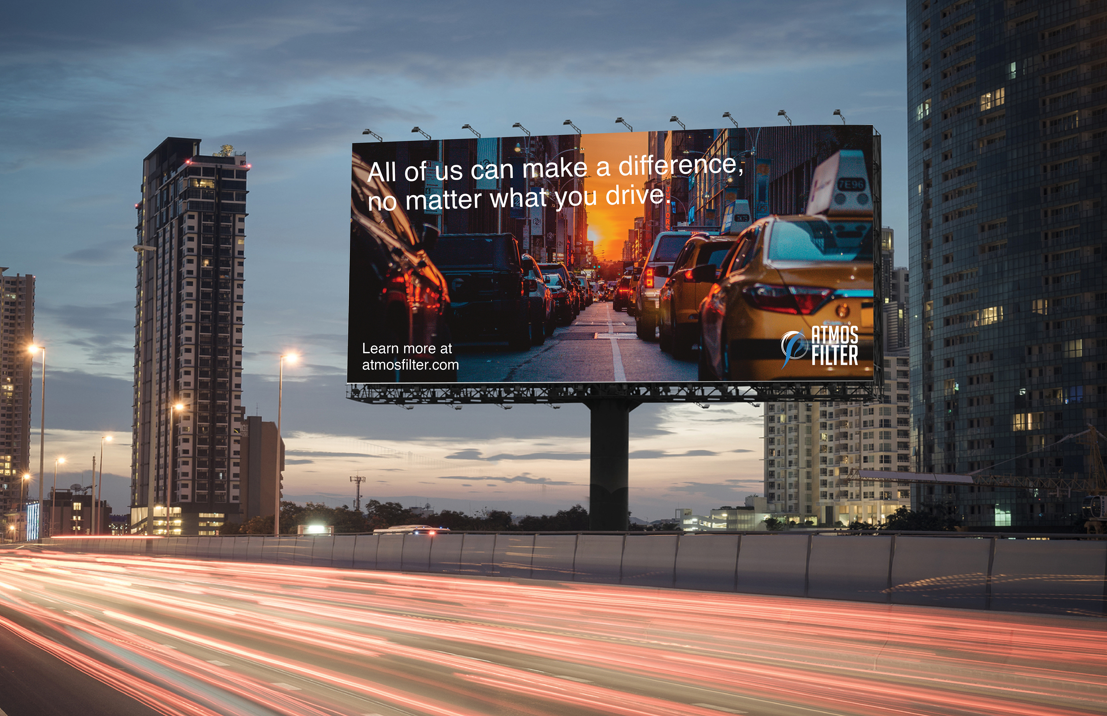 I was asked to create and brand a fictional product that would help solve a problem that was important to me. I imagined the ATMOS FILTER as a tool to fight global warming. The brand is committed to fighting air pollution and reducing automobile impact on climate change.