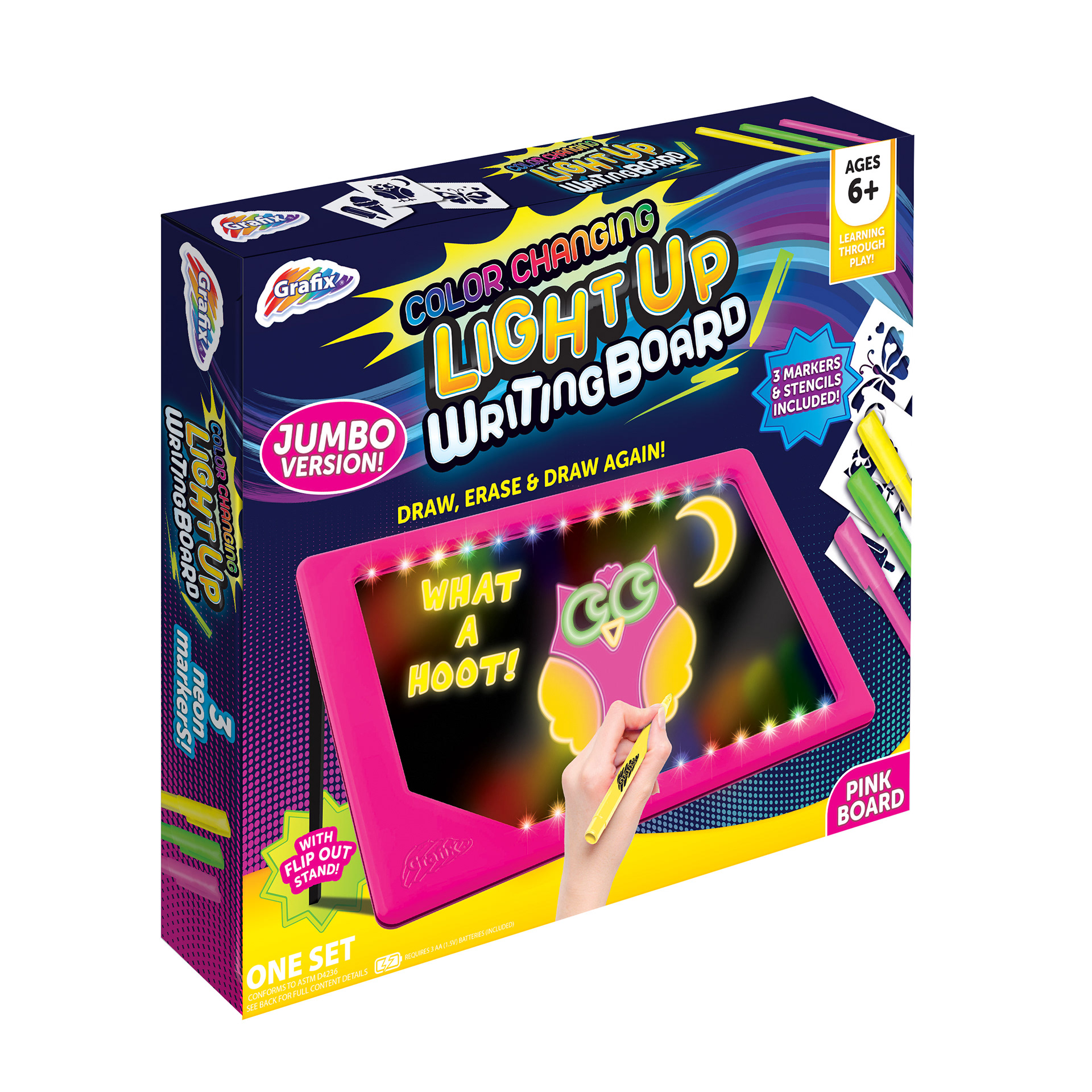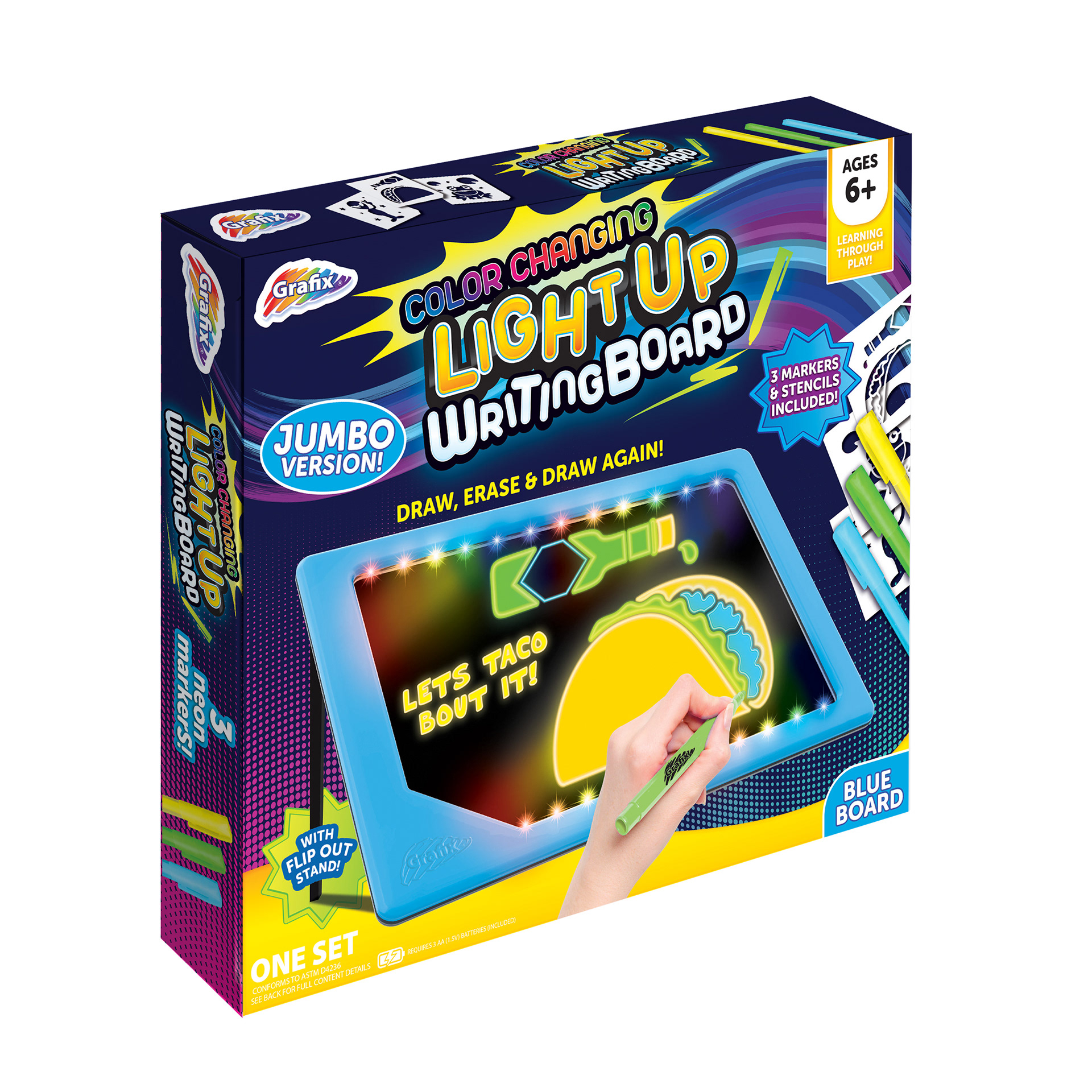 The items below were originally simple light-up drawing boards. I was tasked with updating the line to feature color-changing technology. This involved redesigning the logo and callouts to reflect the new functionality, creating fresh imagery for the boards, and developing new stencils to enhance the user experience. These updates helped refresh the product line and increase its appeal to a broader audience.