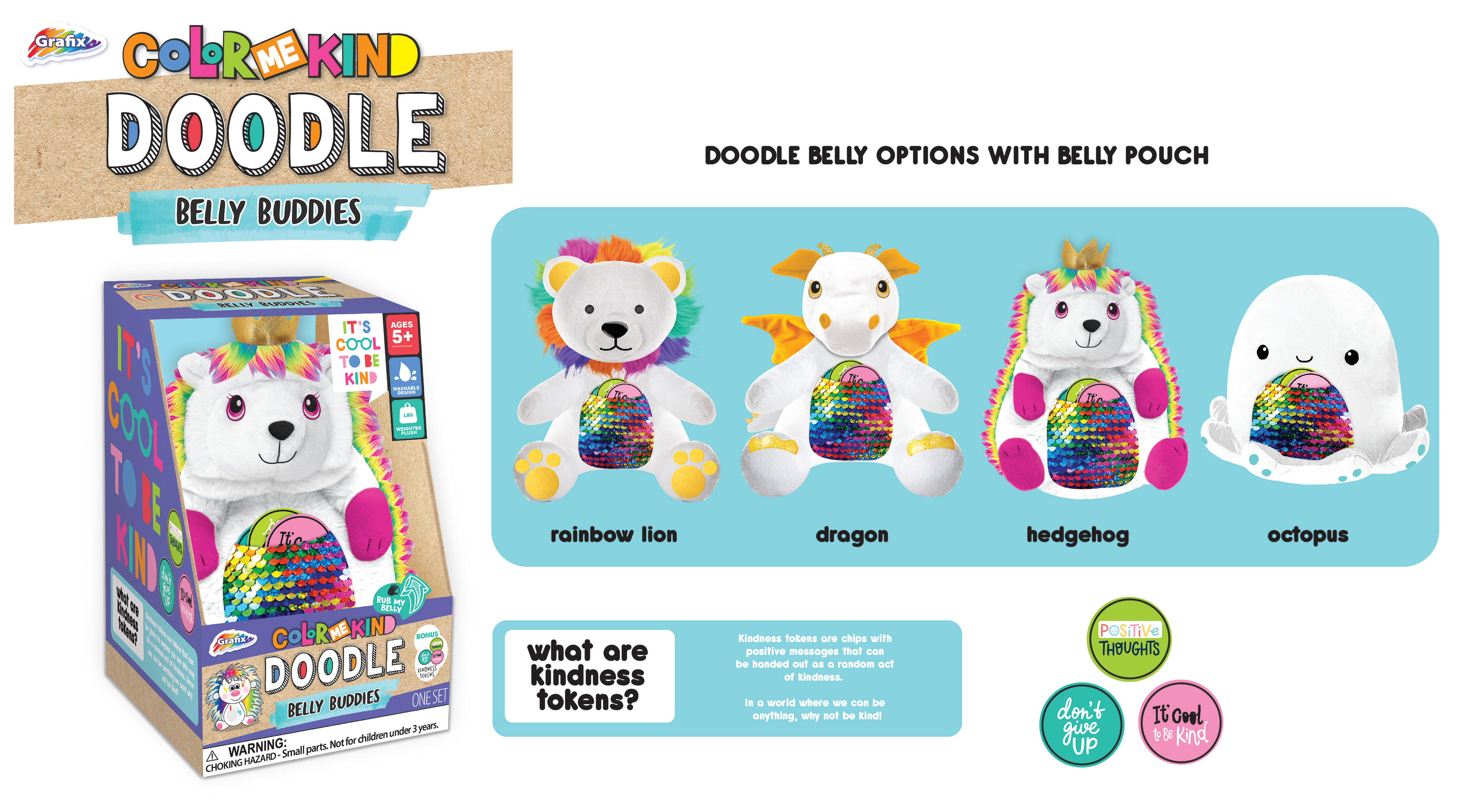 Doodle Belly Buddies was the first project where I had the opportunity to design the actual product, not just the packaging. I created the animal characters in Photoshop, aligning them with the existing style guide for the product line. I selected the color palette, chose the featured characters for the packaging, and updated the logo to reflect the new scented version of Doodle Belly Buddies. This project was a key milestone in my growth as a designer, allowing me to apply both creative direction and brand consistency across multiple elements.
